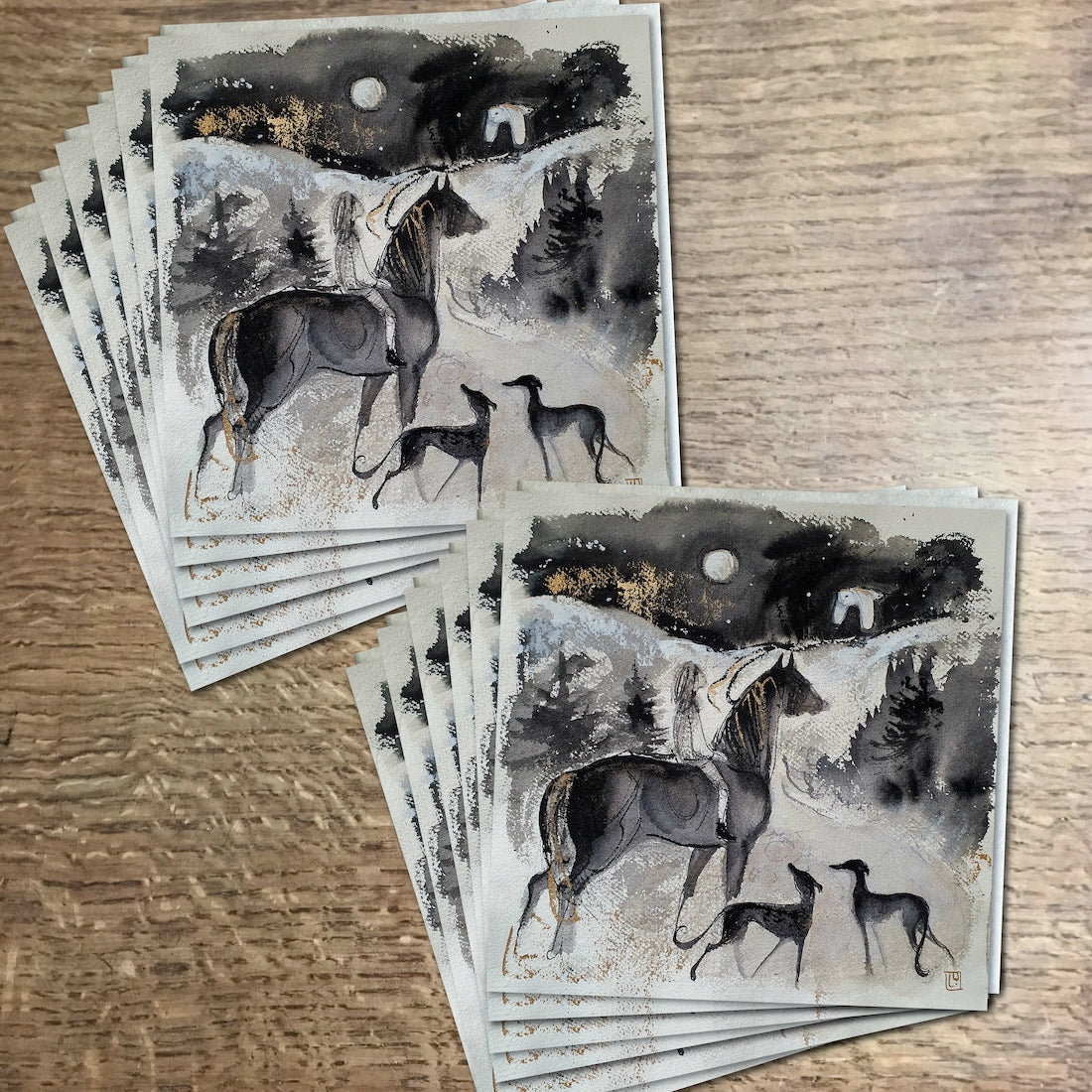 Cards are blank on the inside for your own message. Individually wrapped in biodegradable cellophane, printed on FSC card stock, with 50% recycled, FSC Kraft envelope.
